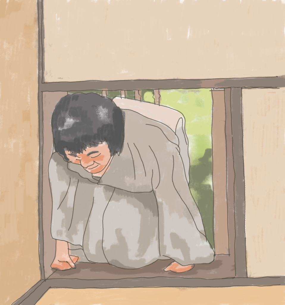 Uno de los tatamis acoge al invitado, que entra por uno de sus lados cortos atravesando la nijiriguchi, una abertura de reducidas dimensiones que obliga a inclinarse: